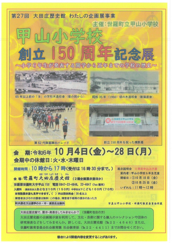 甲山小学校創立150周年記念展 ~小学6年生が発表する開学から近年までの学校の歴史~