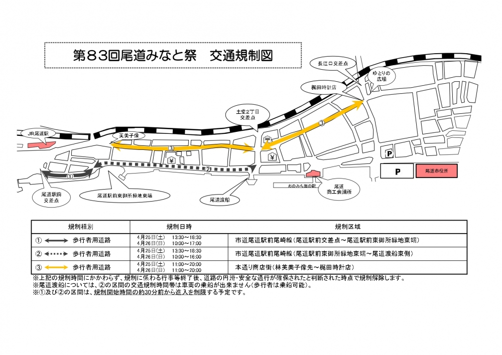 おのなび|広島県尾道市(しまなみ)の観光情報 近代文筆家の直筆原稿と平山郁夫の日本画 市街地一円で多彩なイベントが行われ、尾道の春を盛り上げます! 世界で活躍する演奏家と未来を担う音楽家、総勢130名が尾道に集結。 Recommend Courses! おすすめ!モデルコース サイクリング 1日 【初心者~中級者向け】クルージング&しまなみサイクリングコース〔生口島・因島・向島〕(約30㎞) 約4時間~ 尾道散策 半日 【車の方向け】千光寺公園から出発!尾道ぶらり旅 約3時間~ 尾道散策 半日 2時間で尾道満喫!おさんぽコース 約2時間~ サイクリング 1泊2日 【中級者向け】しまなみ海道縦断!1泊2日サイクリングコース(約70㎞) 〔1日目約30km、3時間~/〔2日目〕約38km、5時間~ サイクリング 1日 【中級者向け】しまなみ欲張り3島サイクリングコース〔生口島・大三島・伯方島〕(約35㎞) 約4時間~ サイクリング 1日 【中級者向け】向島・浦崎のんびりサイクリングコース(約45㎞) 約4時間~ サイクリング 半日 【車の方向け】しまなみ はじめの一歩!多々羅大橋往復サイクリングコース〔生口島・大三島〕(約12キロ) 約2時間~ サイクリング 半日 【初心者向け】気軽にしまなみサイクリング!多々羅大橋往復サイクリングコース〔生口島~大三島〕(約18㎞) 約2時間30分~ サイクリング 半日 【初心者向け】ロマンチックサイクリング!向島~因島コース(約15㎞) 約2時間~(船の時間除く) サイクリング 1日 【初心者~中級者向け】サイクリング&生口島満喫コース(約23㎞) 約4時間~ そのほか 半日 【車の方向け】ぐるっと尾道360°ドライブコース 車で約4時間~ 尾道散策 半日 7つのお寺をめぐってご利益をいただこう!尾道七佛めぐりコース 約3時間~ 尾道散策 1日 きっと満足!ゆっくりじっくり尾道さんぽコース 約4時間~ モデルコース一覧を見る Cycling Go! サイクリング情報 自転車本体の予約や宿泊施設 レンタサイクル予約(しまなみ海道サイクリング) しまなみ自転車旅の宿(サイクリスト向けの宿探し) ガイド依頼の予約(おのなび旅行社) What's new! 新着情報 2026-04-21トピックス 【お知らせ】新尾道駅観光案内所の臨時休業について New! 2026-04-16トピックス 第83回尾道みなと祭チラシ(PDF4.0MB) 第83回尾道みなと祭チラシ(4MB) 2026-04-08観光情報 花めぐりタクシー乗車券のご案内(尾道駅発⇔世羅高原農場プラン) 花めぐりタクシー乗車券 チラシ(0.6MB) 2026-03-23トピックス 【旅行会社・バス会社様】長江口バス専用駐車場の予約状況がご覧いただけます 2026-03-23トピックス 「おのなび」のデザインをリフレッシュしました 新着情報一覧を見る -- Onomichi Movie -- もうすぐ桜の季節|絶景とレトロな雰囲気なお花見を【広島県尾道市】 駐車場も猫の細道も千光寺もこれで完ぺき! ドライブで尾道に来たら……おすすめ半日散策コース 「&尾道散策 #07 」 夏のしまなみ海道サイクリング体験 &尾道散策_#05しまなみサイクリング初心者コース紹介 Map & Brochures!! 地図・パンフレットコーナー 尾道観光に役立つパンフレットを配信中。 尾道エリア(尾道市内)、近隣エリア(尾道市外)別に、イベント情報、観光パンフ、マップなどの旅に役立つPDFがダウンロードできます。 More and More! 尾道をもっと楽しむ イベントカレンダー尾道やしまなみ海道・やまなみ街道沿線のイベント情報 おのなびチャンネル尾道の風情あるムービーをYouTubeで配信中 千光寺公園ライブ画像千光寺公園の四季をライブ画像でお楽しみください おのなびフォトゼミ尾道観光協会主宰の写真ゼミ 観光案内・ガイド 観光案内所 観光ガイド Sister sites おのなび姉妹サイト おのなびショップ当観光協会の会員様が提供する尾道・しまなみ関連のお土産&グッズを販売。 おのたび当観光協会が運営する「おのなび旅行社」が 紹介する尾道を楽しむ旅のプラン。 おのみちや尾道の風景写真を無料でダウンロードできます。商用・私用無料の写真素材。 観光スポットをマップで探す デジタルマップおのみち