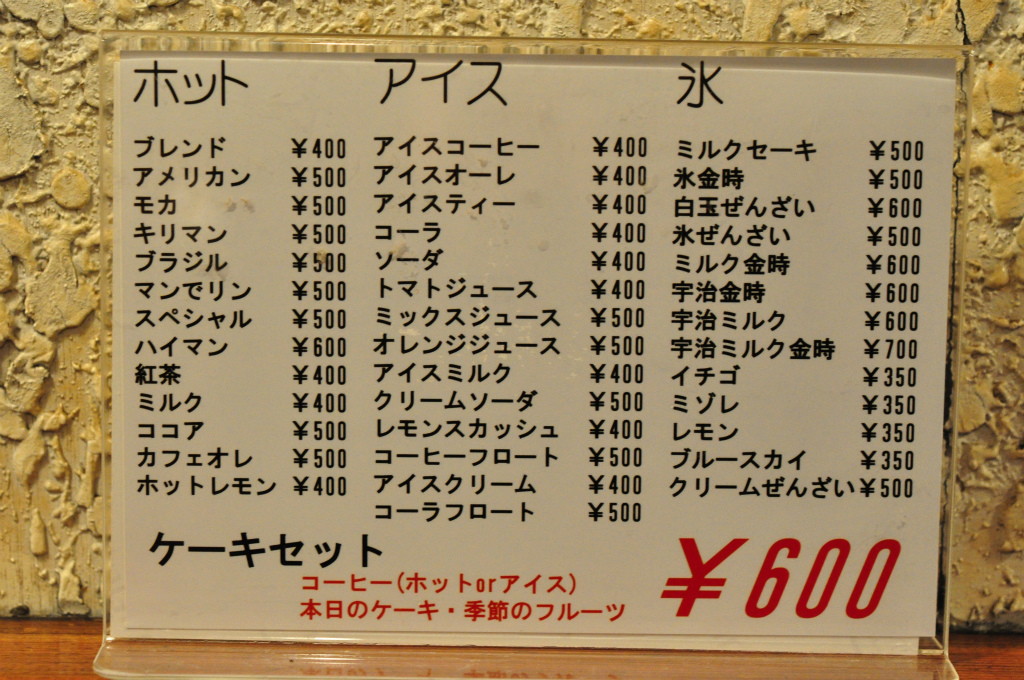 ・ケーキセット(コーヒー+本日のケーキ・季節のフルーツ) 600円