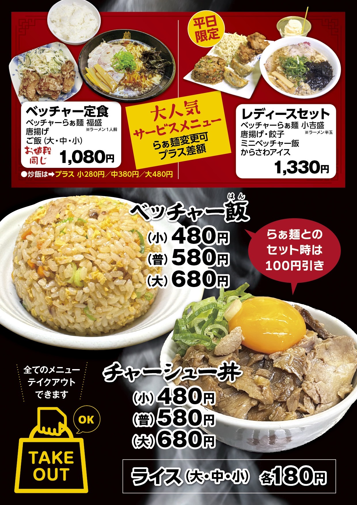 (ベッチャーらぁ麺・唐揚げ・ご飯)