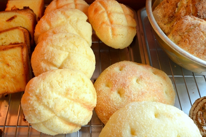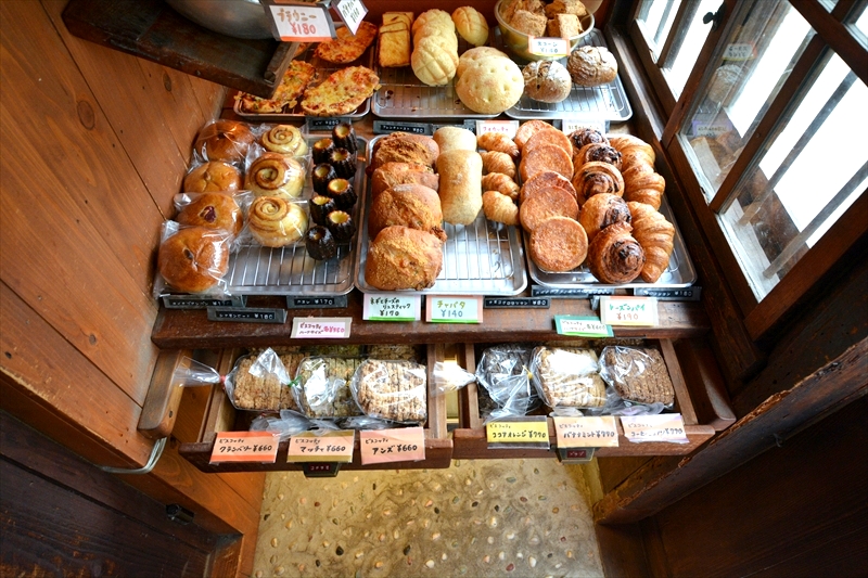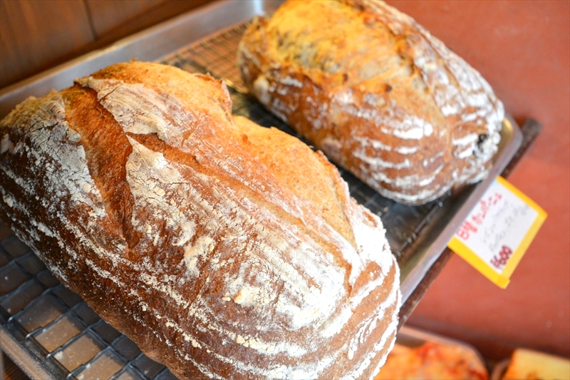 店内はひとり入るのがやっとのスペースに、こだわりの手づくりパンや焼き菓子が並んでいます。