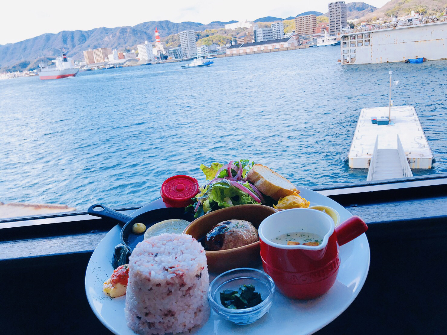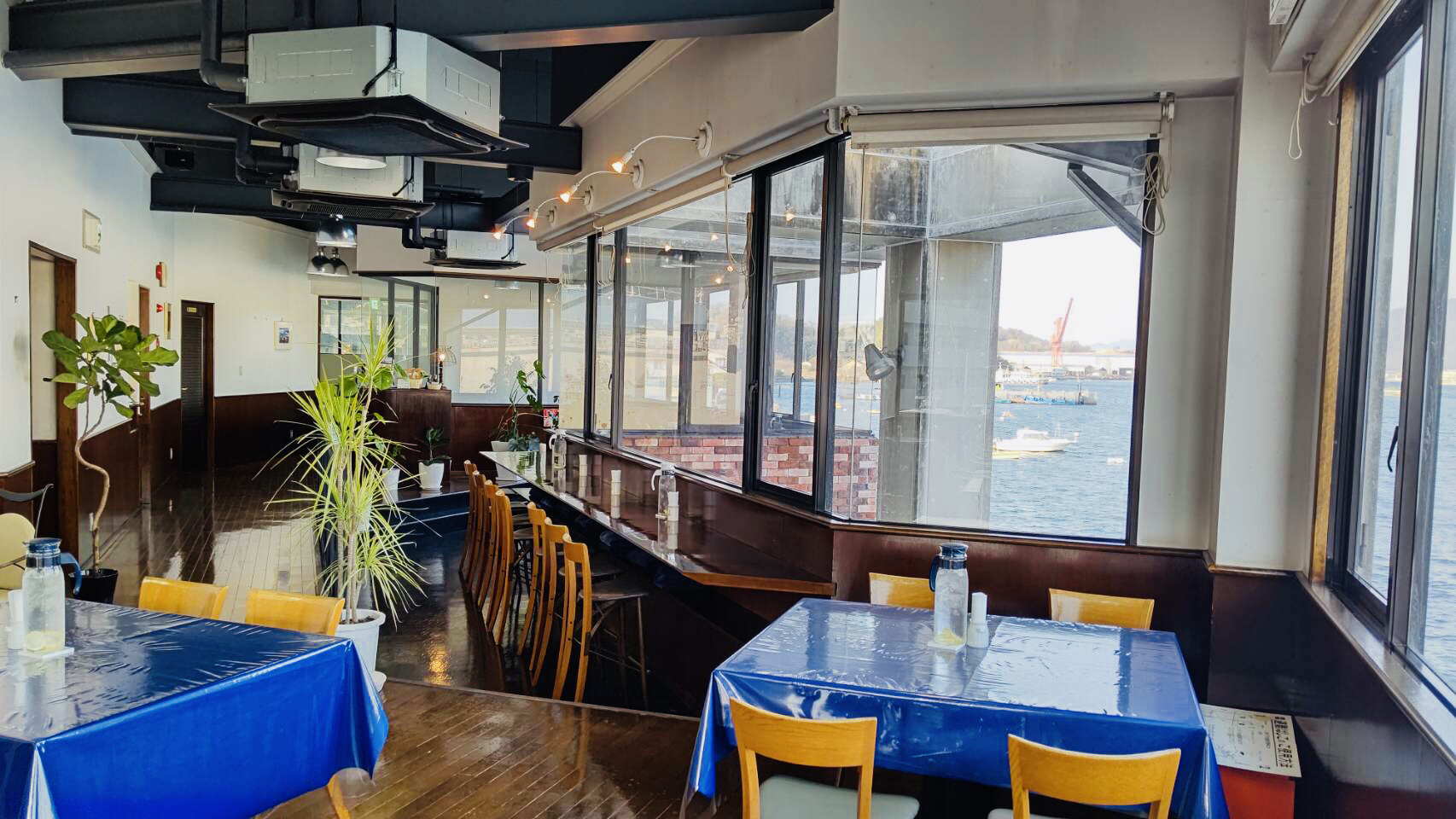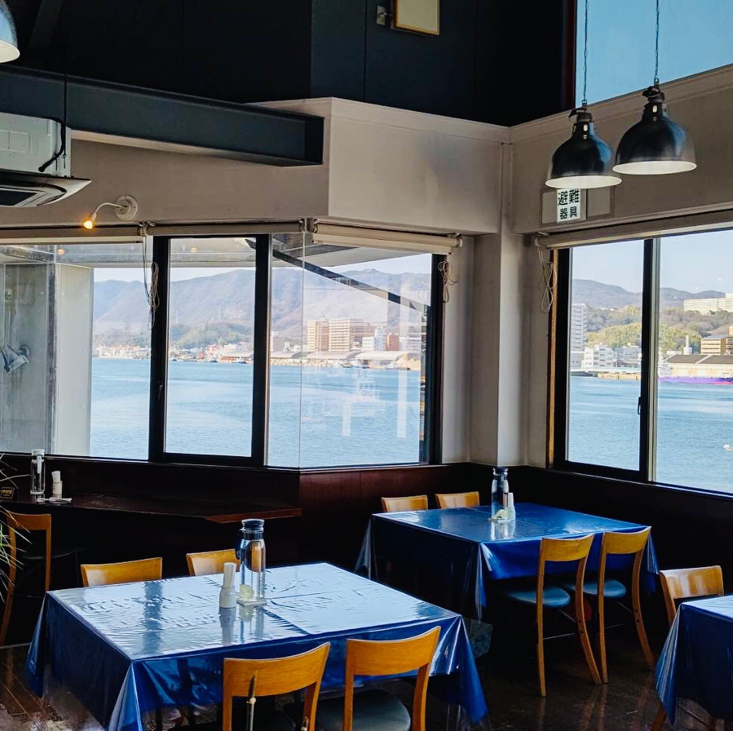 店内から海側がガラス貼りのパノラマ状で、尾道水道を一望でき、どの席からも海が見える。朝は、7時から営業で、ゆったりとしたモーニングが楽しめる。また、12品付いた多細なワンプレートランチも人気。