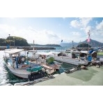 因島土生町にある箱崎漁港の風景です。奥には土生港周辺の町並みが見えています。
