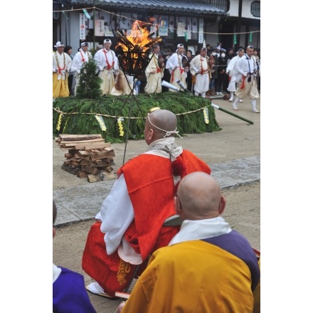奥に見えているのは護摩壇で、火がかけられた後、行者たちが裸足で渡ってゆきます。