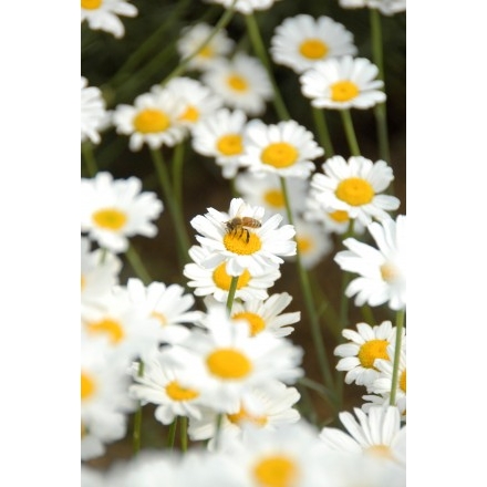 除虫菊は鮮やかな黄と白が特徴的なかわいらしい花で、名前の通りこの花を加工するとおなじみの「蚊取り線香」ができます。