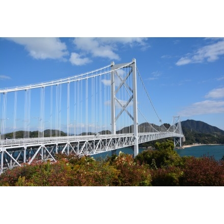 因島側から見たしまなみ海道因島大橋です。奥には向島の高見山が見えています。