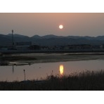 藤井川河口付近から明け方の風景。ゆっくりと朝日が昇っていきます。