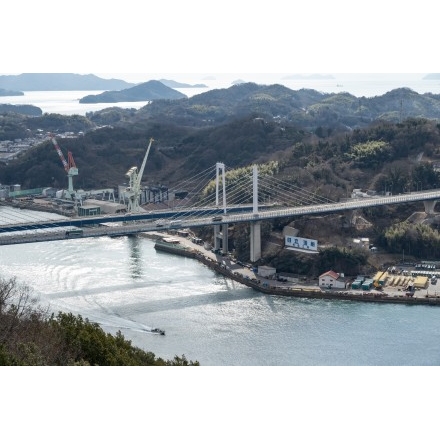 尾道水道にはしまなみ海道新尾道大橋(手前)と並行して尾道大橋(奥)が架かっています。
