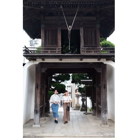 尾道を旅する観光客のイメージです。写真は天寧寺の山門です。