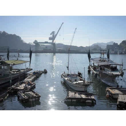 初冬を迎えた尾道水道の風景です。穏やかな水面に冬の日差しが輝いています。