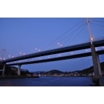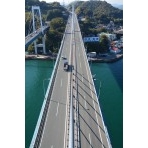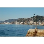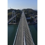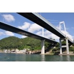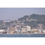 朝の尾道水道をゆく定期船。この航路では尾道駅前と向島、浦崎、百島、常石を結んでいます。奥には尾道市役所周辺の街並みが見えています。