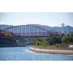 船上から見た向島大橋です。橋の左は向島、右が岩子島(いわしじま)でこの島の間の海峡は御幸瀬戸(みゆきせと)と呼ばれています。