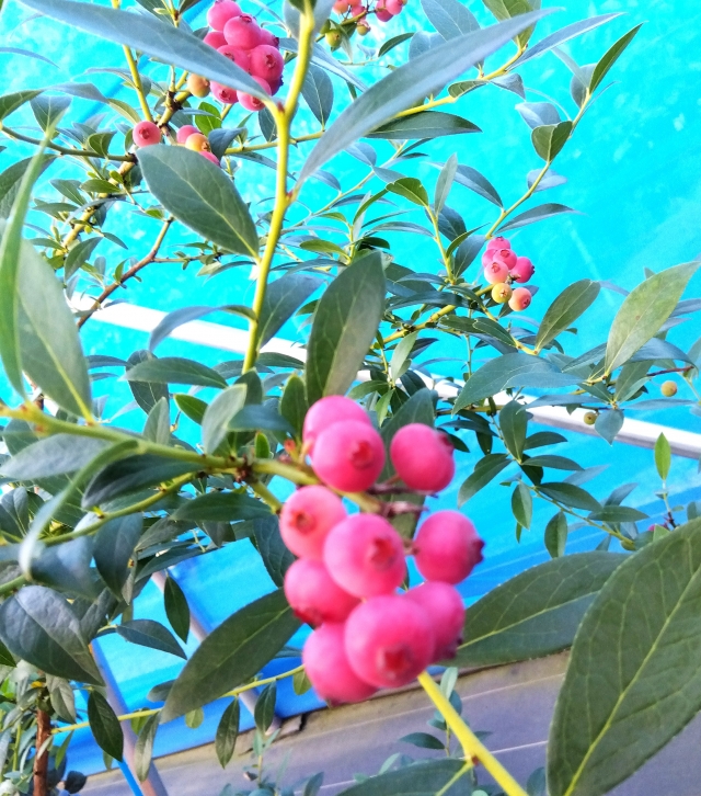 500円玉大の大粒やピンク色のブルーベリーに出会えるかもしれません。