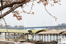 尾道水道に面した向島のさくら名所。行き交う渡船や、対岸から見る千光寺公園の桜風景も絶品。 |