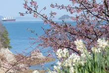 因島 船隠し公園の河津桜が見ごろを迎えています キラキラ光る瀬戸内の海と、濃いピンク色の河津桜のコントラストがとてもキレイに見られる因島の船隠し公園。 |