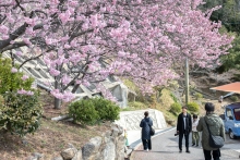 千光寺公園の寒桜が満開になりました 一足先に春のを知らせるカンザクラが満開になり、行き交う人々が足を留めて桜を見上げていました。 |