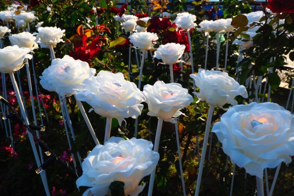 今回は一日も早い新型コロナウイルス感染症の終息を願うとともに、お越しいただいた方々へ安らぎと癒しを感じてもらい、併せて日夜奮闘してくださっている医療従事者の方々に感謝を伝えることを目的にイルミネーションを施しています。