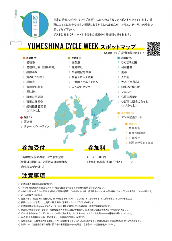 上島町のサイクリングロード「ゆめしま海道」の撮影スポットを自転車でめぐりながら撮影した写真をインスタグラムに投稿しよう。