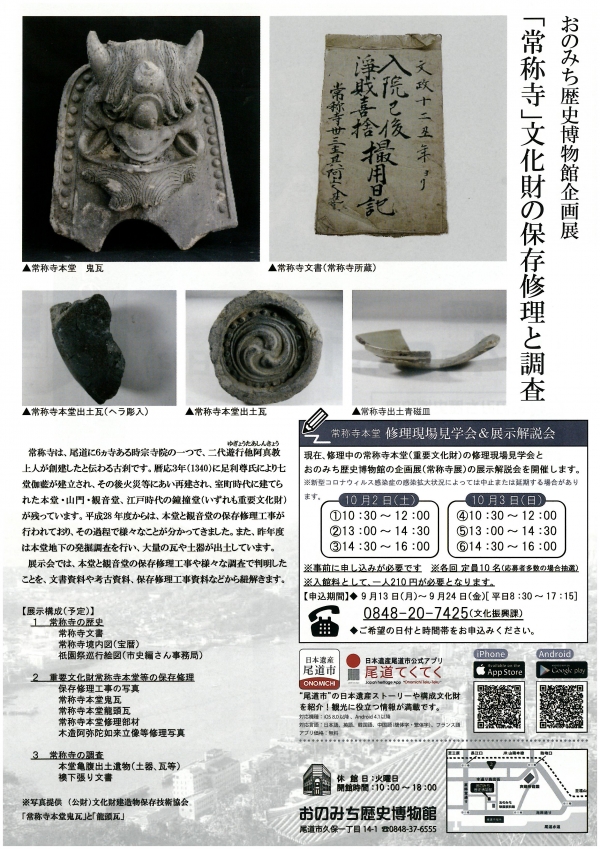 おのみち歴史博物館企画展「常称寺ー文化財の保存修理と調査」