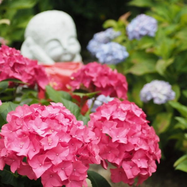 府中市のあじさい寺として名高い神宮寺で開催されるあじさい祭り。あじさいの愛好家の皆さんが丹精込めて育て上げたあじさいが境内に咲き誇ります