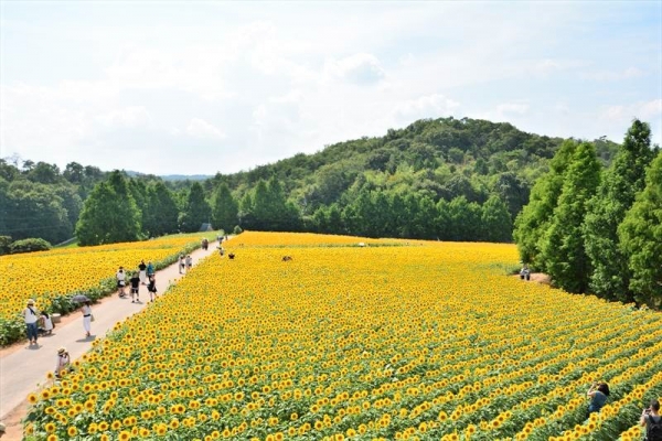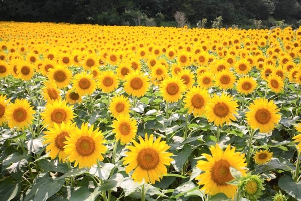 50品種約110万本ものひまわりが65,000㎡もの広大な園内をビタミンカラーに染め上げます。ここでないとなかなか見ることができない珍しいひまわりもぜひ見ておきましょう。