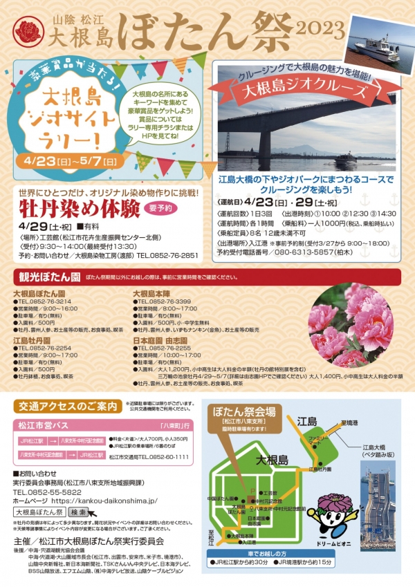 0852-55-5822(松江市大根島ぼたん祭実行委員会事務局)
