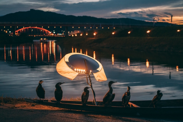 鵜匠が巧みに鵜を操り川魚を捕らえる様子を船の上から間近にご覧いただけます。