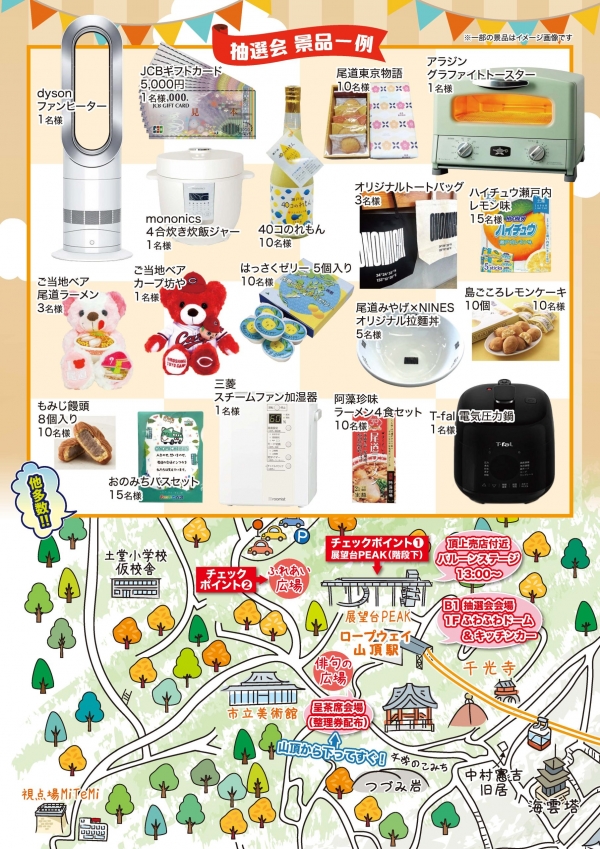 俳句広場でお茶席、キッチンカーの出店や空くじなしの抽選会など楽しい催しです。抽選会への参加はロープウェイチケット+チェックポイント2か所の印をお集め下さい。