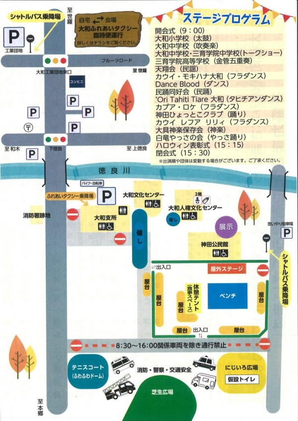 豪華景品が当たるハロウィン仮装コンテストや大具神楽保存会による神楽上演をはじめ、グルメ屋台も出店します。