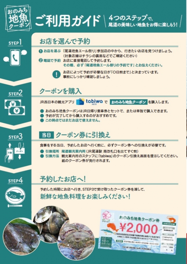 参加店に電話で予約し、「地魚エールツアー利用」と伝える