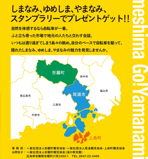 しまなみ海道(尾道市)、ゆめしま海道(上島町)、やまなみ街道(世羅町)
