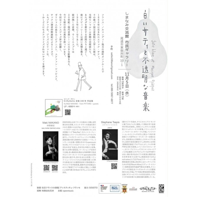 ホーム > イベントカレンダー > 音楽イベント「白いサティと不透明な音楽」