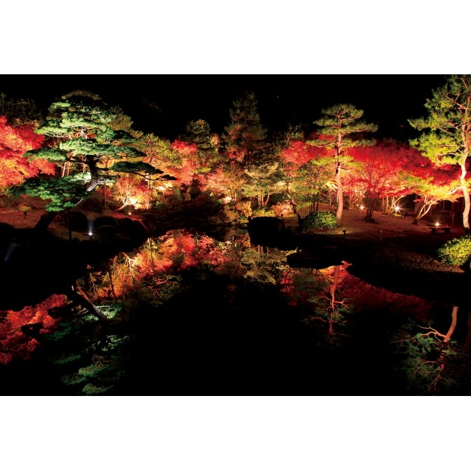 内容 | 広さ4万平方メートル以上におよぶ山陰最大級の池泉回遊式日本庭園。黒松と池泉、築山で形づくられた出雲の国の箱庭。 秋の園内は紅葉であふれ、300本以上のイロハモミジやドウダンツツジなど。水鏡に映り込む逆さ紅葉も美しく心を引きつけます。 日中はもちろん、ライトアップされた夜の紅葉はさらに美くしく庭を彩ります。 ※イルミネーション開催中の庭園内は足元が暗い場所などがございます。小さなお子様などは特にお気をつけてお楽しみください。また、夜間の日本料理「竹りん」の営業はいたしておりません。 |