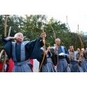| 内容 | 嘉吉元年(1441年)の嘉吉の乱で敗れた赤松満祐の一族7人が百島に遁れて住み着き、敵の追討襲撃に備えて弓の稽古に専念したのが始まりと伝えられています。 射手には島内の3地区から計15名が選ばれ、15m先の直径60cmの的に向け太鼓の合図とともに次々と射的を行います。 |