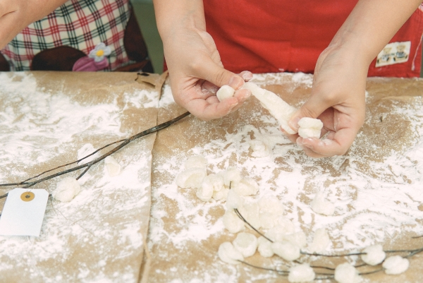 オープニング以外では、体験メニュー(有料:500円)でもち花飾りを作ることができます。