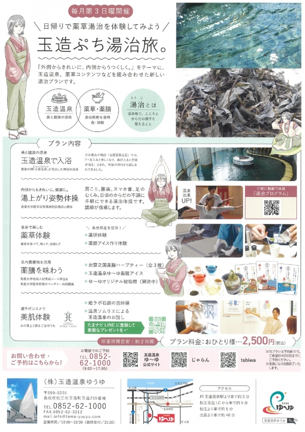 玉造ぷち湯治旅~外側からキレイに、内側からうつくしく~|玉造温泉ゆ~ゆ【要事前予約】