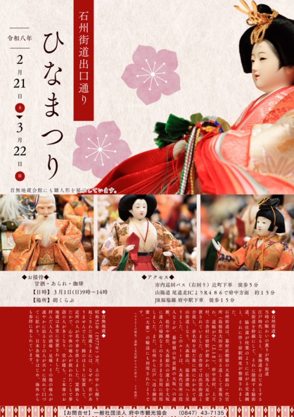 ぜひ、まち歩きを楽しみながら、それぞれの場所で出会う「ひなまつり」を巡ってみて下さい。