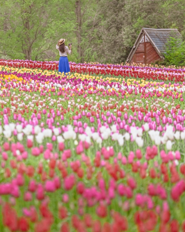 約65,000平方メートルの広大な農場に75万球の淡いチューリップが咲き誇り春の情景を作り出します。