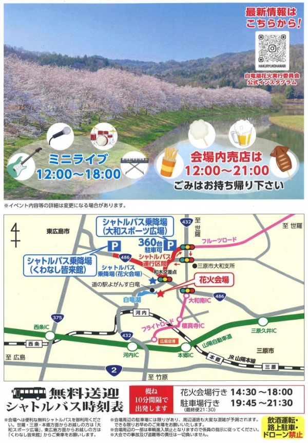 湖面に映し出される花火と桜の競演をお楽しみください。 -