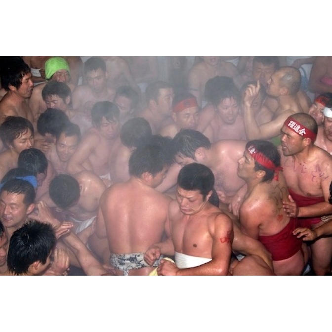 | 内容 | 毎年2月の第三土曜日に行われる県内唯一のはだか祭り。「御福開祭」は、はだか祭りの前の神事で、本殿内でおこなわれます。 宮司により参加者の名前を書いた御供が清められ福が開かれた「御福開」となります。 裸男は、まず御調川で身を清めてかけ声と共に走って神社へあがります。 御福木は、「陰(赤)」と「陽(白)」二本が投下され、奪い合います。参加すれば、無病息災が叶えられると信じられています。 また三原駅発着のバスツアーも本年から実施されます。(参加料3,000円。夕食・夜食込み) |