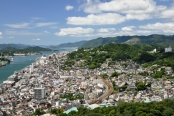 尾道市内や眼下を斜めに横切る尾道水道、向島にある造船所やしまなみ海道沿線の島々を眺めることができます。