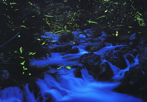 竹地川のせせらぎに育まれたホタルたちが優しい光を灯しながら舞う様子をお楽しみください。
