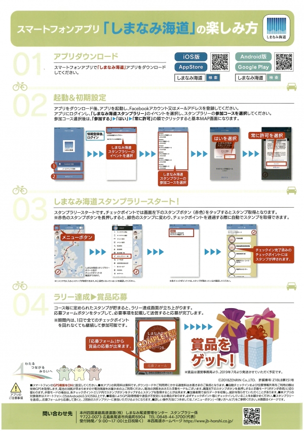 スタンプラリーの参加費は無料ですが、本四高速道路の通行料金は有料となります。(自転車通行料金と走行者は無料です)