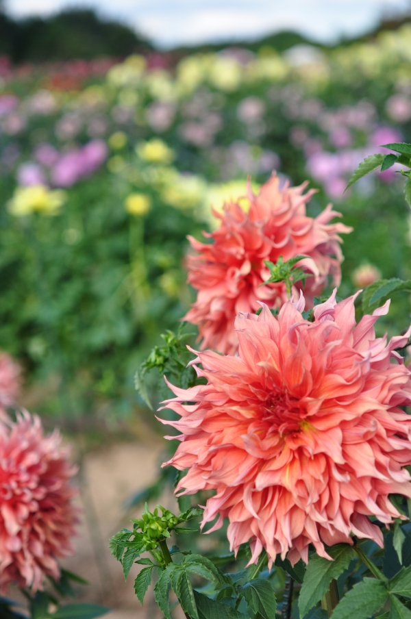 日本最長200m、約50品種のダリアの列植えの「ロングダリアガーデン」をはじめ、大小色とりどりのダリアが高原一面に咲き誇ります。