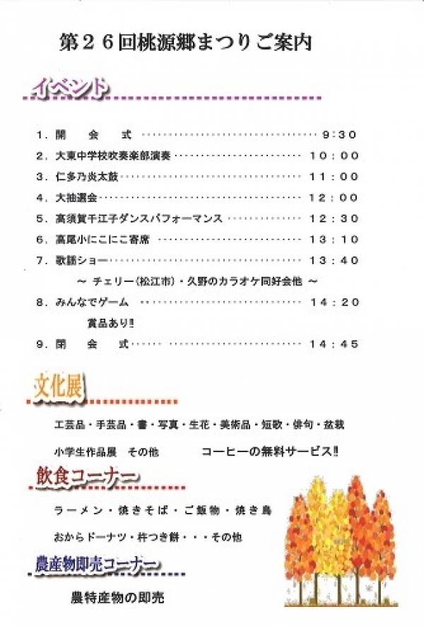 久野地区振興会(桃源郷まつり実行委員会) 0854-47-0040