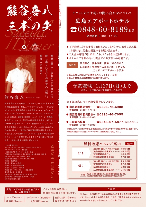 熊谷喜八×三本の矢 スペシャルディナー【予約締切:1月27日】