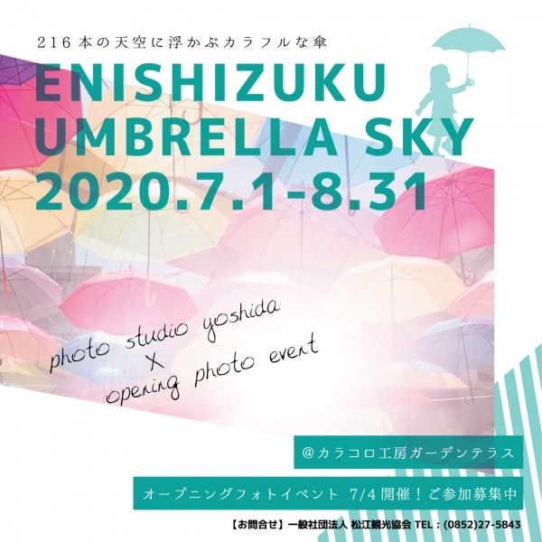 216本もの色とりどりの傘で添乗を覆うイベント。カラフルな傘の下でご縁をいただいてみませんか?