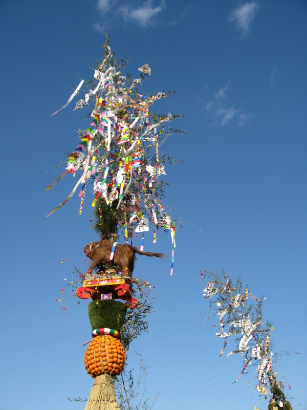 江戸時代の元禄年間より続くとんど祭。正月の神迎えの依り代(よりしろ)として用いられた注連飾りや門松などを燃やし、その炎や煙とともに再び天に歳神を送ります。