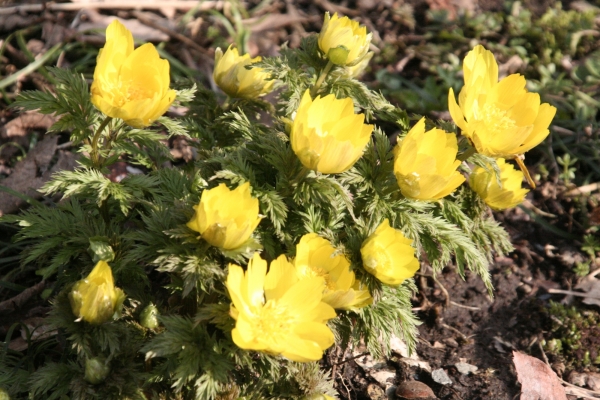 福を招くとされる春の花「福寿草」の自生地が公開されます。ここで見られるのは日本に自生する4つのうちのひとつ「ミチノクフクジュソウ」で、延長約1.5kmの山際に広がっています。