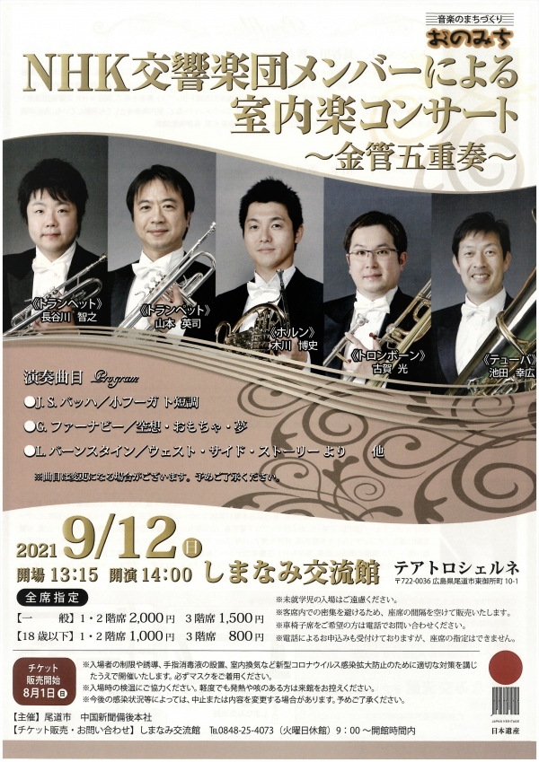 NHK交響楽団のメンバー5人による本格的な生の音楽をお楽しみください。